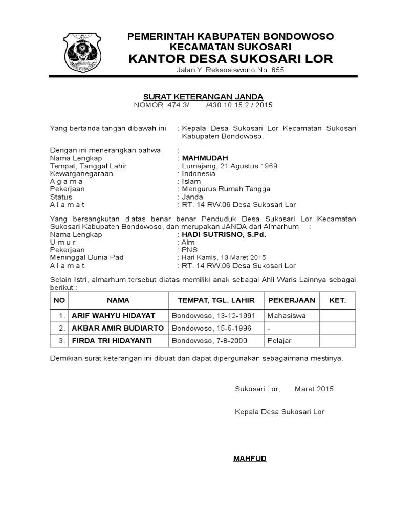 Surat Keterangan Janda Dari Kepala Desa Doc Kumpulan Contoh Surat